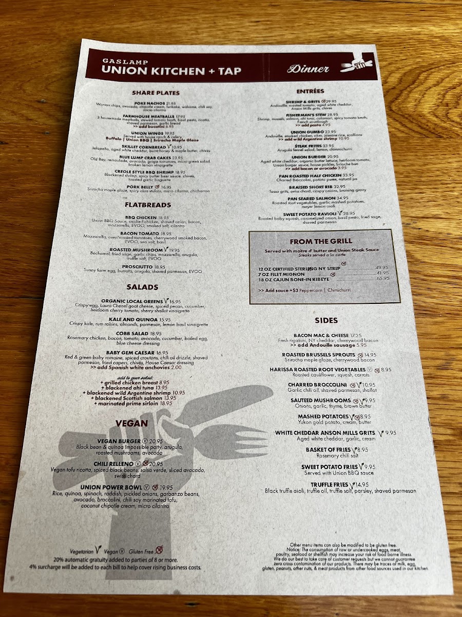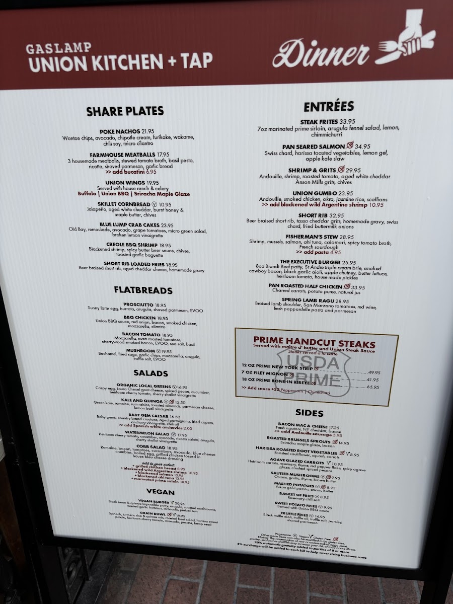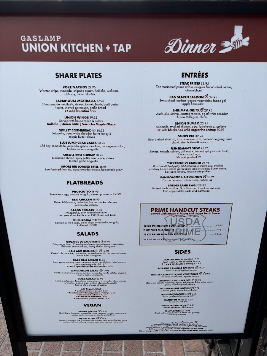 Union Kitchen and Tap Gaslamp delivers a robust American dining experience nestled in the heart of San Diego. Their menu shines with inventive flatbreads, such as the Breakfast Bechamel—a perfect blend of mozzarella, andouille, bacon, roasted tomato, and sunny farm eggs drizzled with maple syrup. The Prosciutto Sunny Farm Egg flatbread, crowned with burrata and shaved parmesan, offers a fresh, delicate balance. For savor lovers, the BBQ Chicken flatbread features smoky chicken, Union BBQ sauce, and crisp bacon, while the Honey Roasted Fig flatbread brings a sweet-savory twist with goat cheese and balsamic glaze.