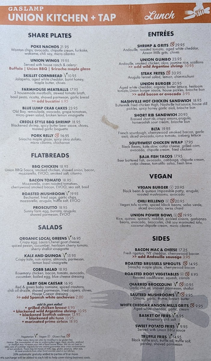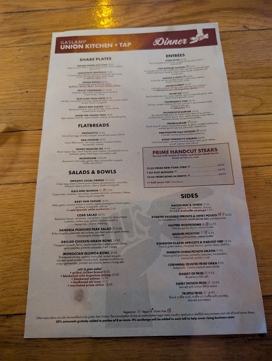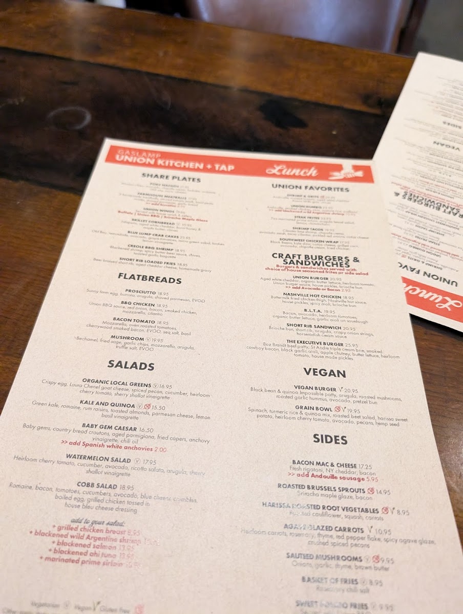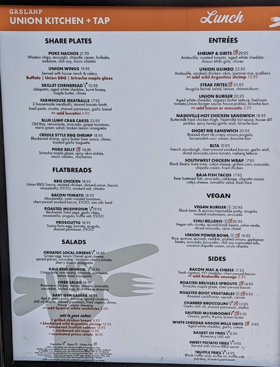 Union Kitchen and Tap Gaslamp delivers a robust American dining experience nestled in the heart of San Diego. Their menu shines with inventive flatbreads, such as the Breakfast Bechamel—a perfect blend of mozzarella, andouille, bacon, roasted tomato, and sunny farm eggs drizzled with maple syrup. The Prosciutto Sunny Farm Egg flatbread, crowned with burrata and shaved parmesan, offers a fresh, delicate balance. For savor lovers, the BBQ Chicken flatbread features smoky chicken, Union BBQ sauce, and crisp bacon, while the Honey Roasted Fig flatbread brings a sweet-savory twist with goat cheese and balsamic glaze.